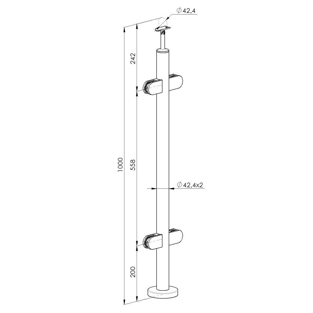 Der Pfosten ist kompatibel mit Rundrohren, die einen angenehmen Durchmesser von 42,4 mm haben. Dadurch wird eine bequeme Handhabung ermöglicht. Außerdem ist der Edelstahlsteher für eine gerade Geländerhöhe von 100 cm ausgelegt, was eine angenehme Barrierehöhe schafft, die Sicherheit und Offenheit vereint.