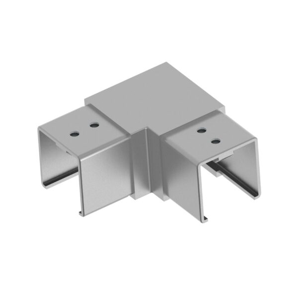 Dieser eckige Nutrohr-Eckverbinder mit horizontalem 90° Winkel für 40x40mm Nutrohre, eignet sich perfekt für Verbindungen im rechten Winkel.